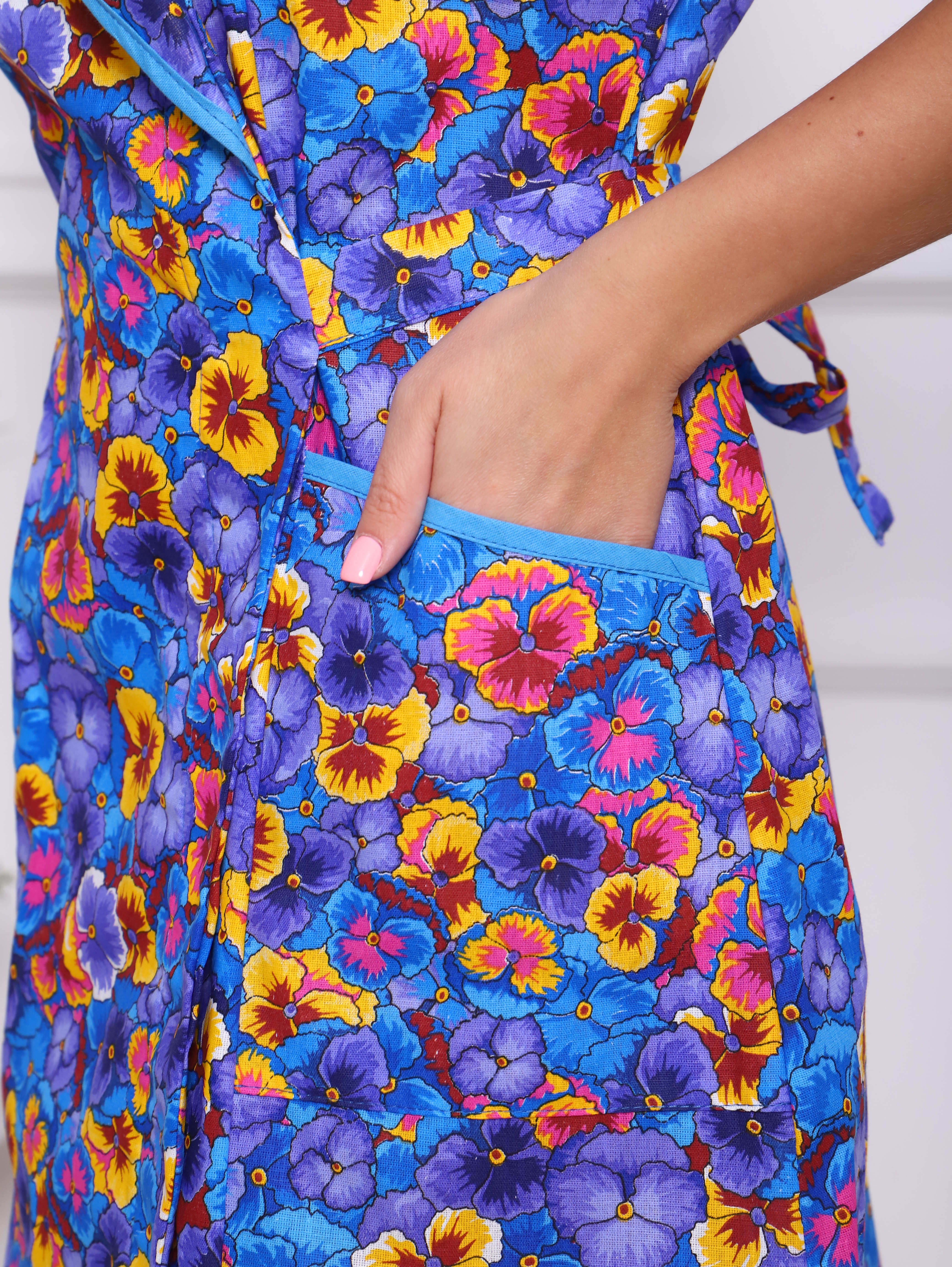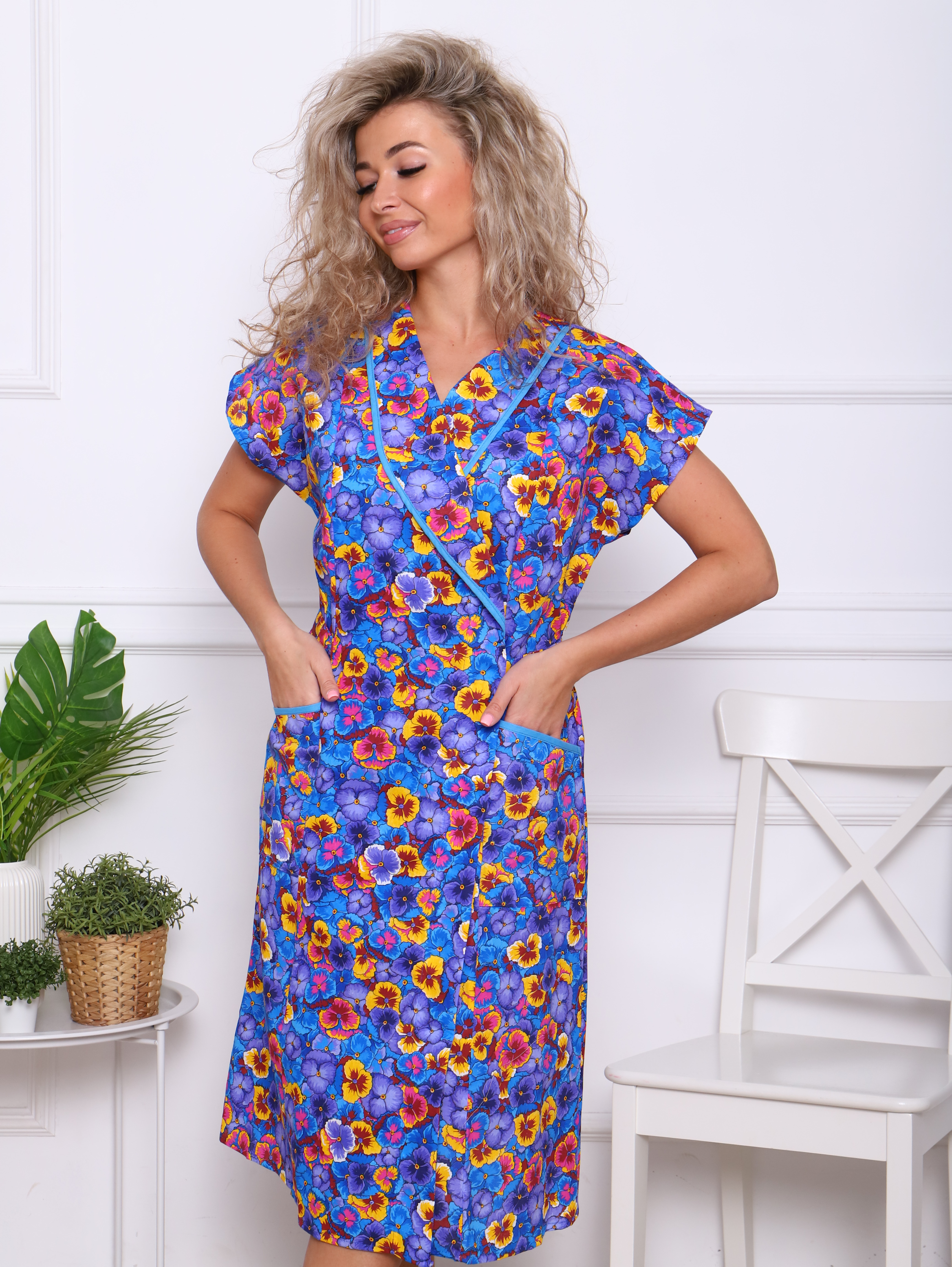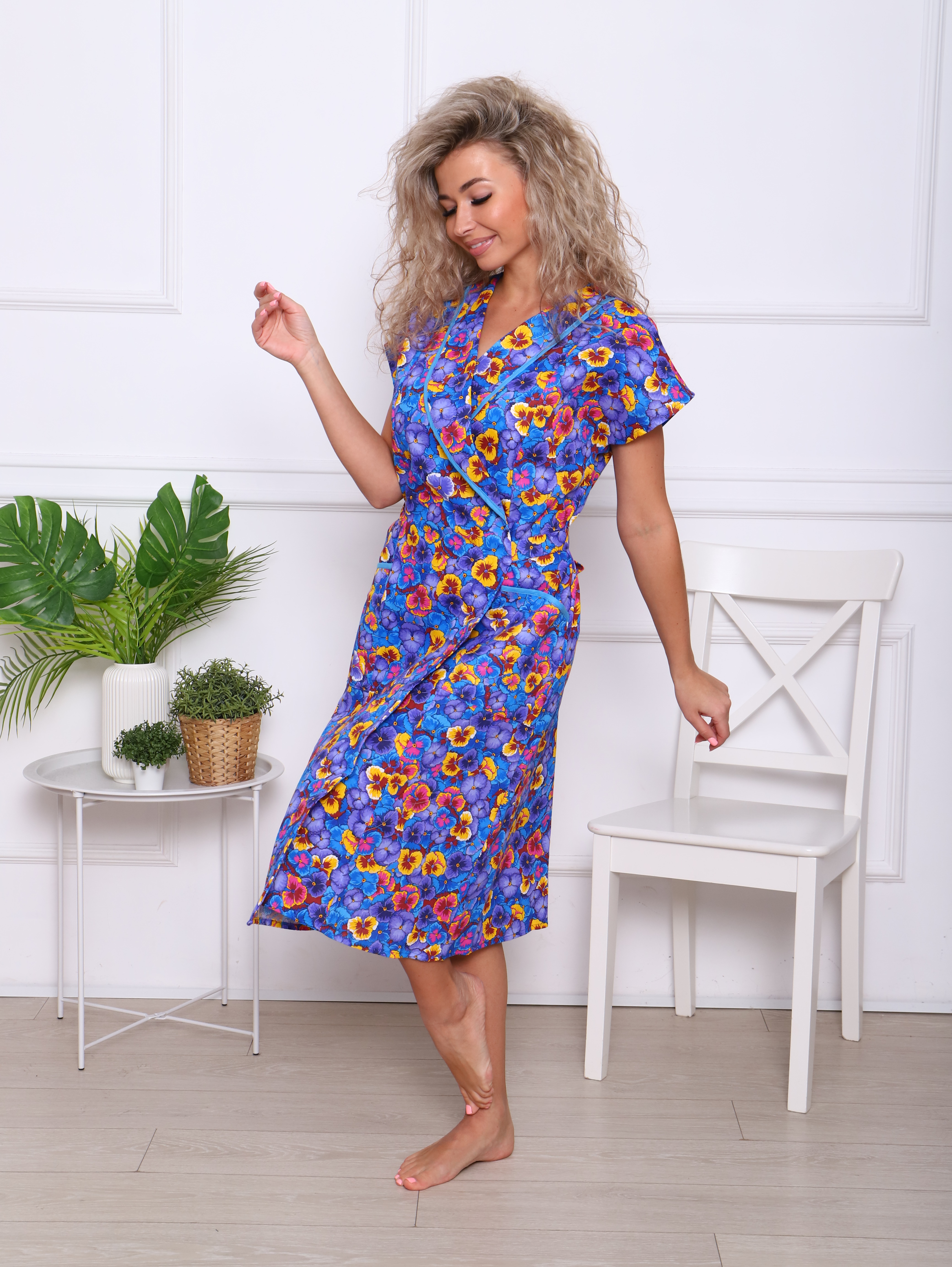Женский халат из бязи на запах Анютины глазки