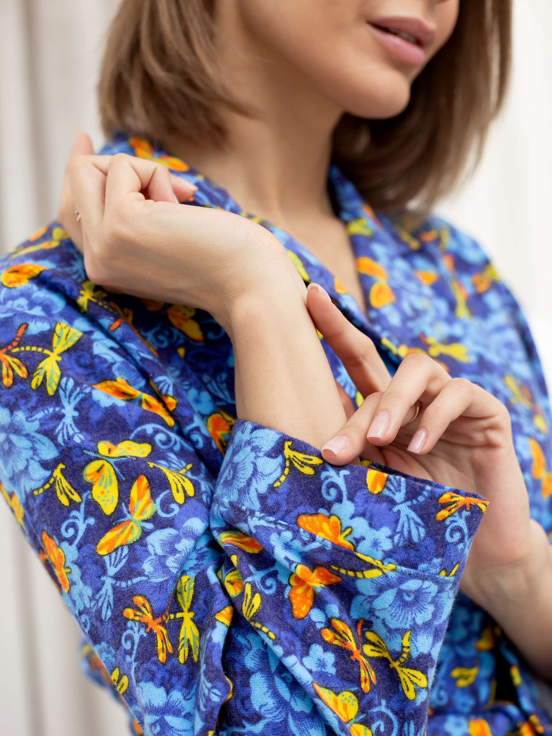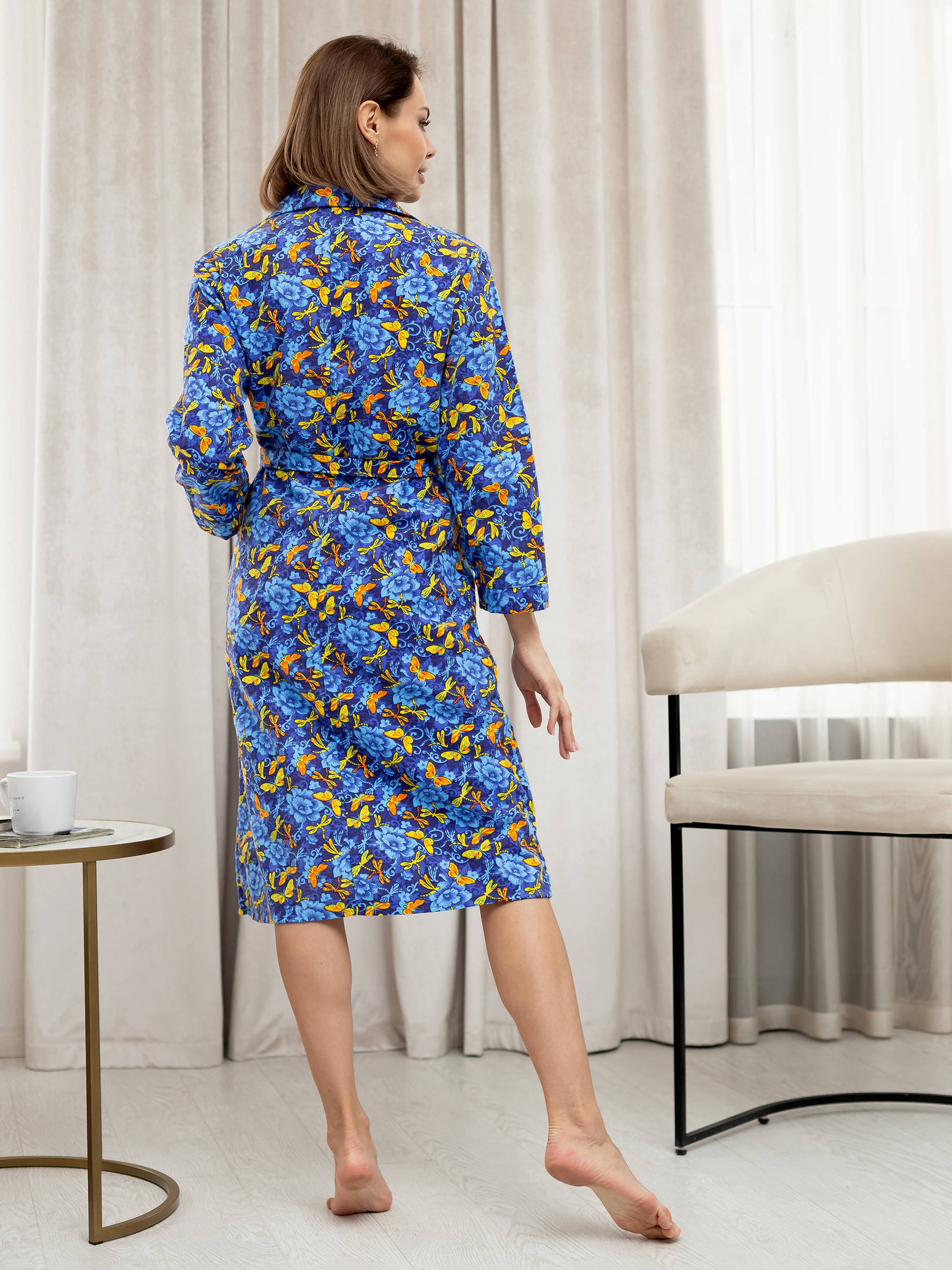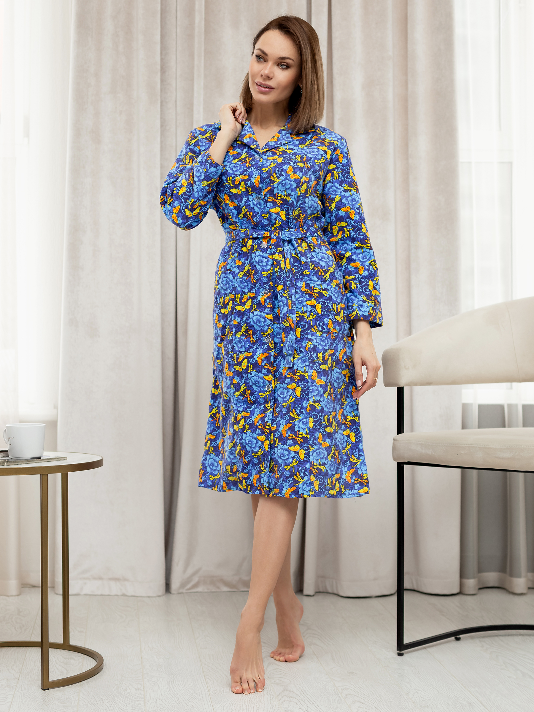 Халат женский фланелевый на пуговицах Бабочки