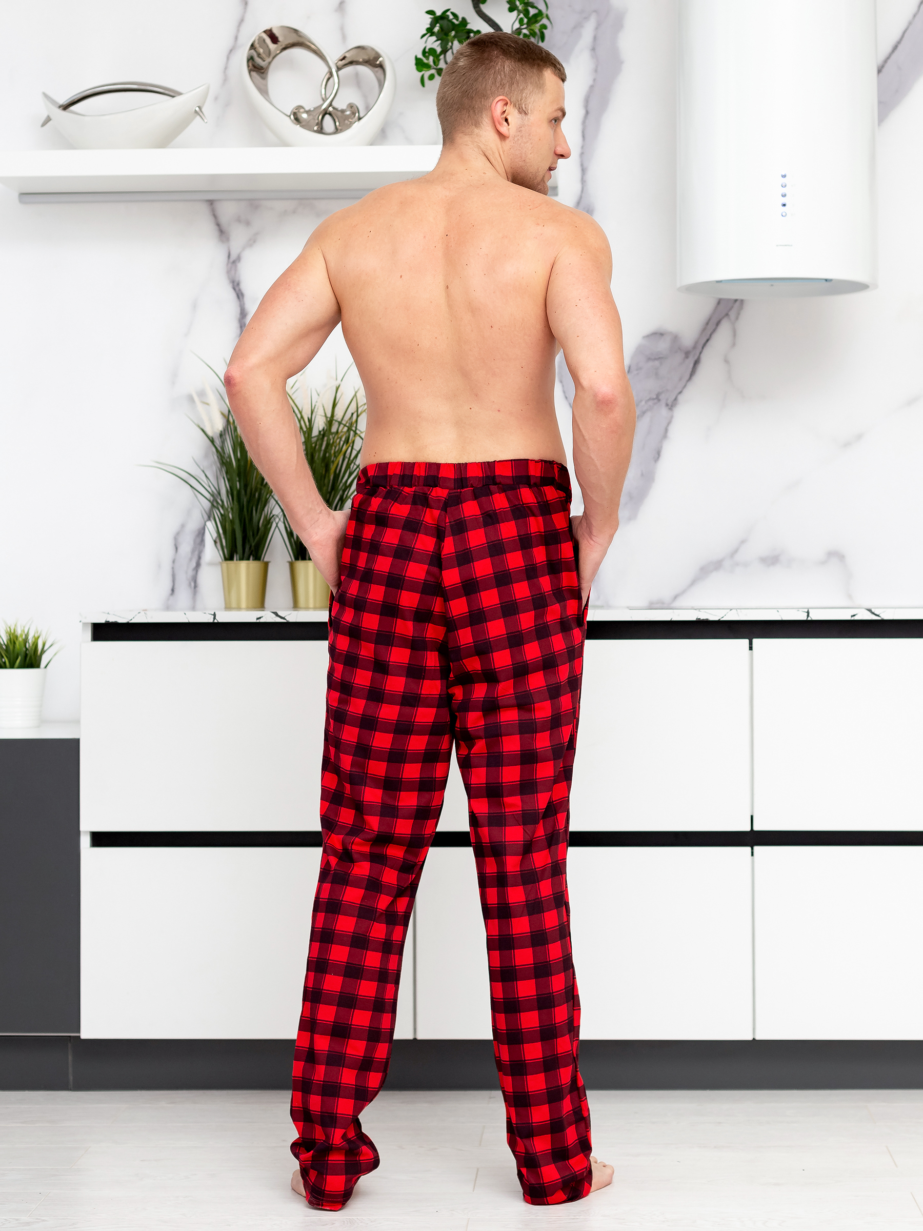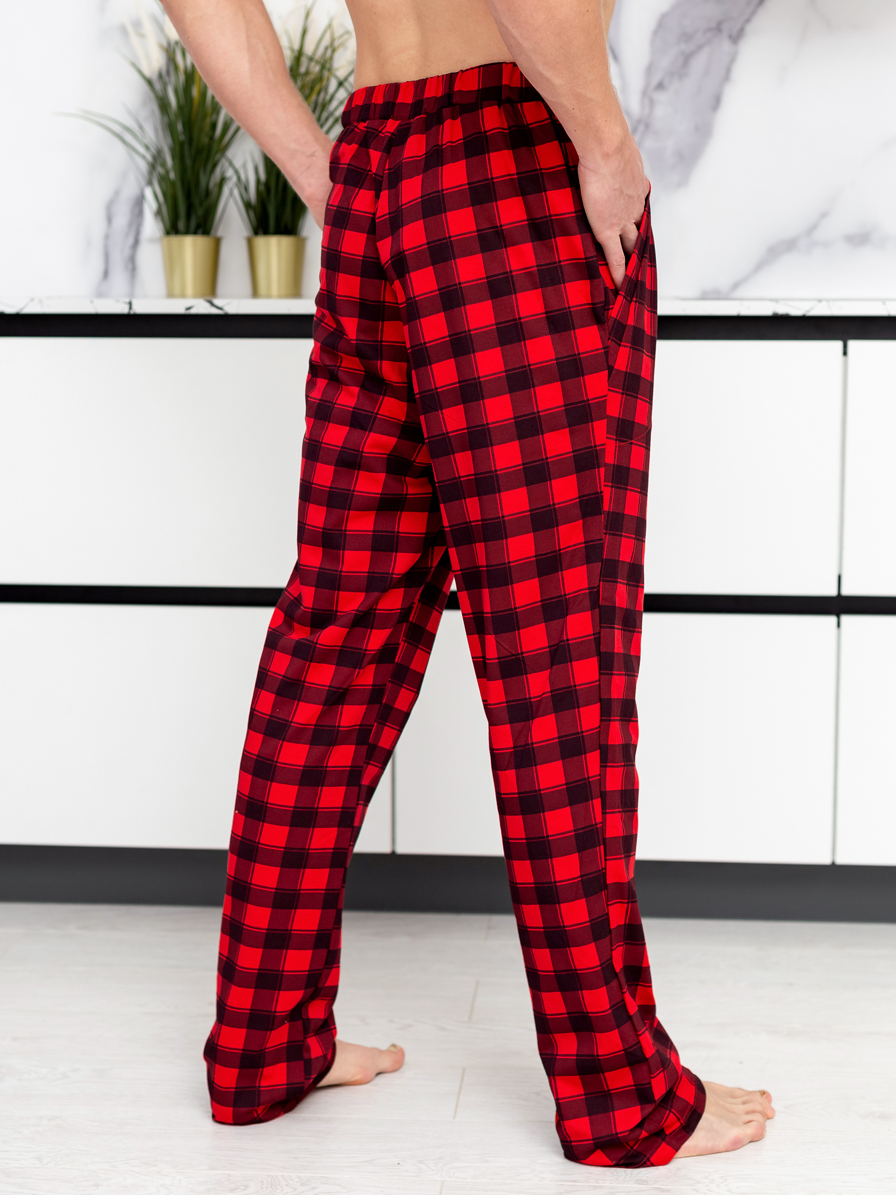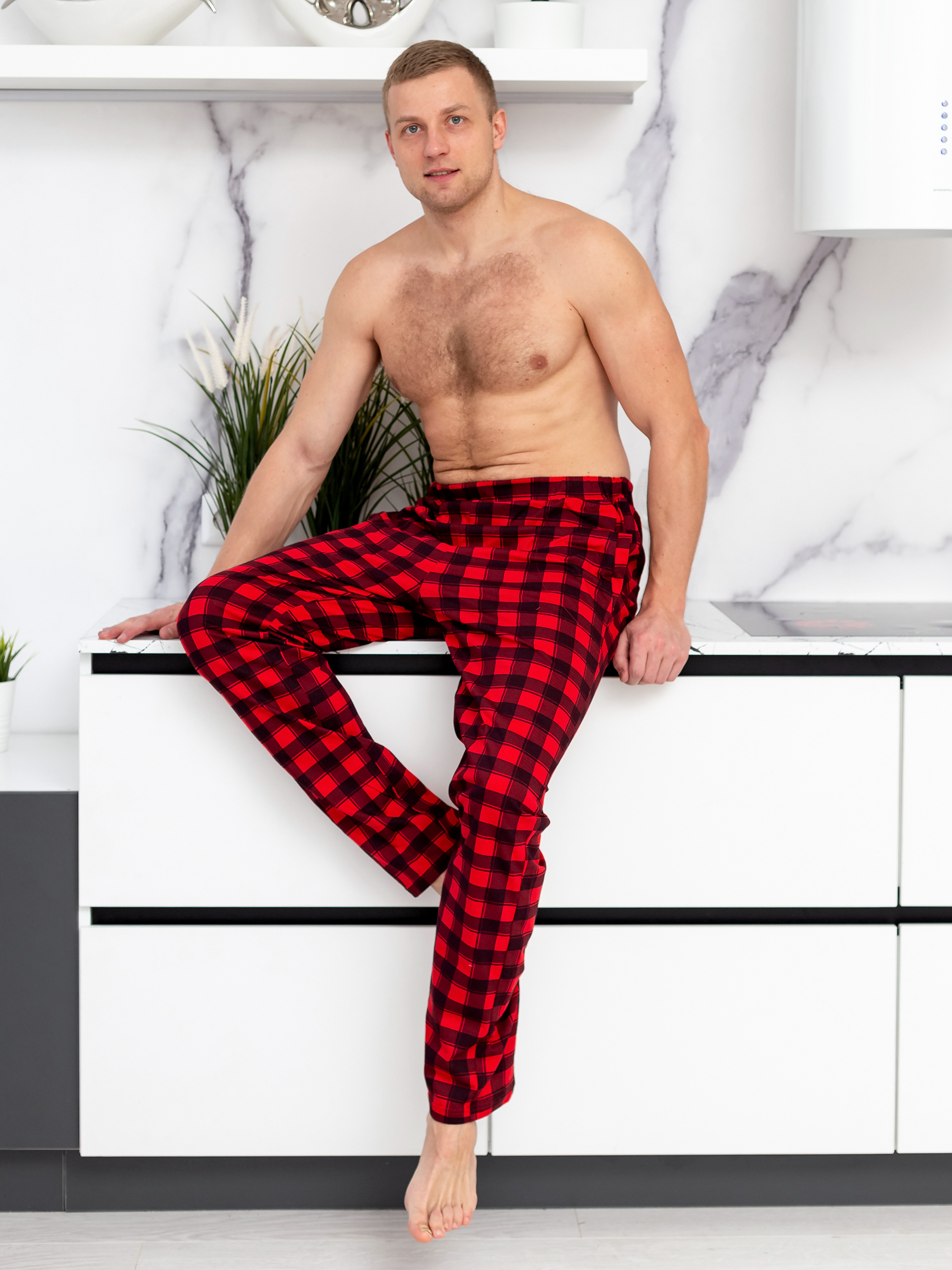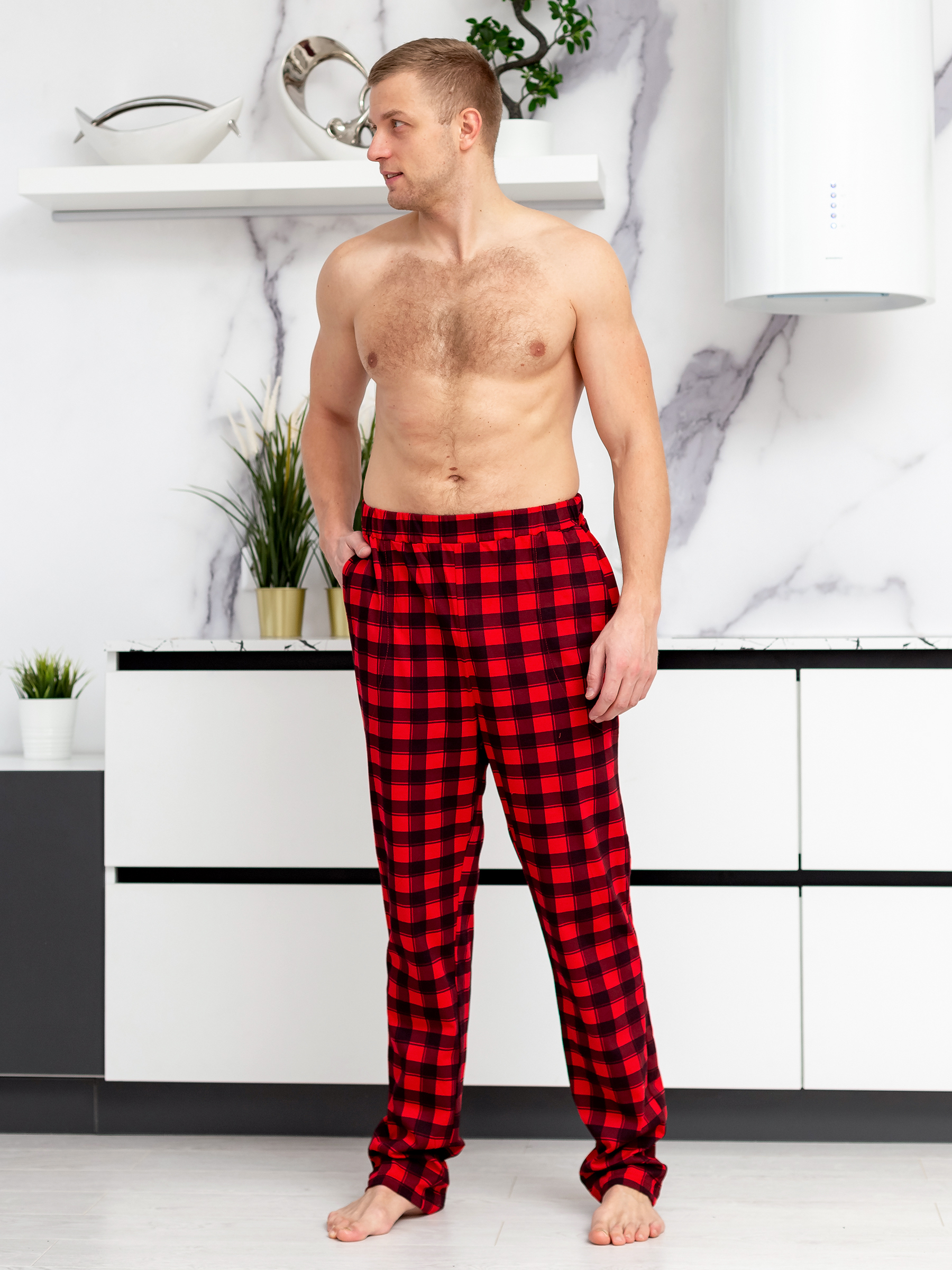 Мужские трикотажные домашние брюки из хлопка.
