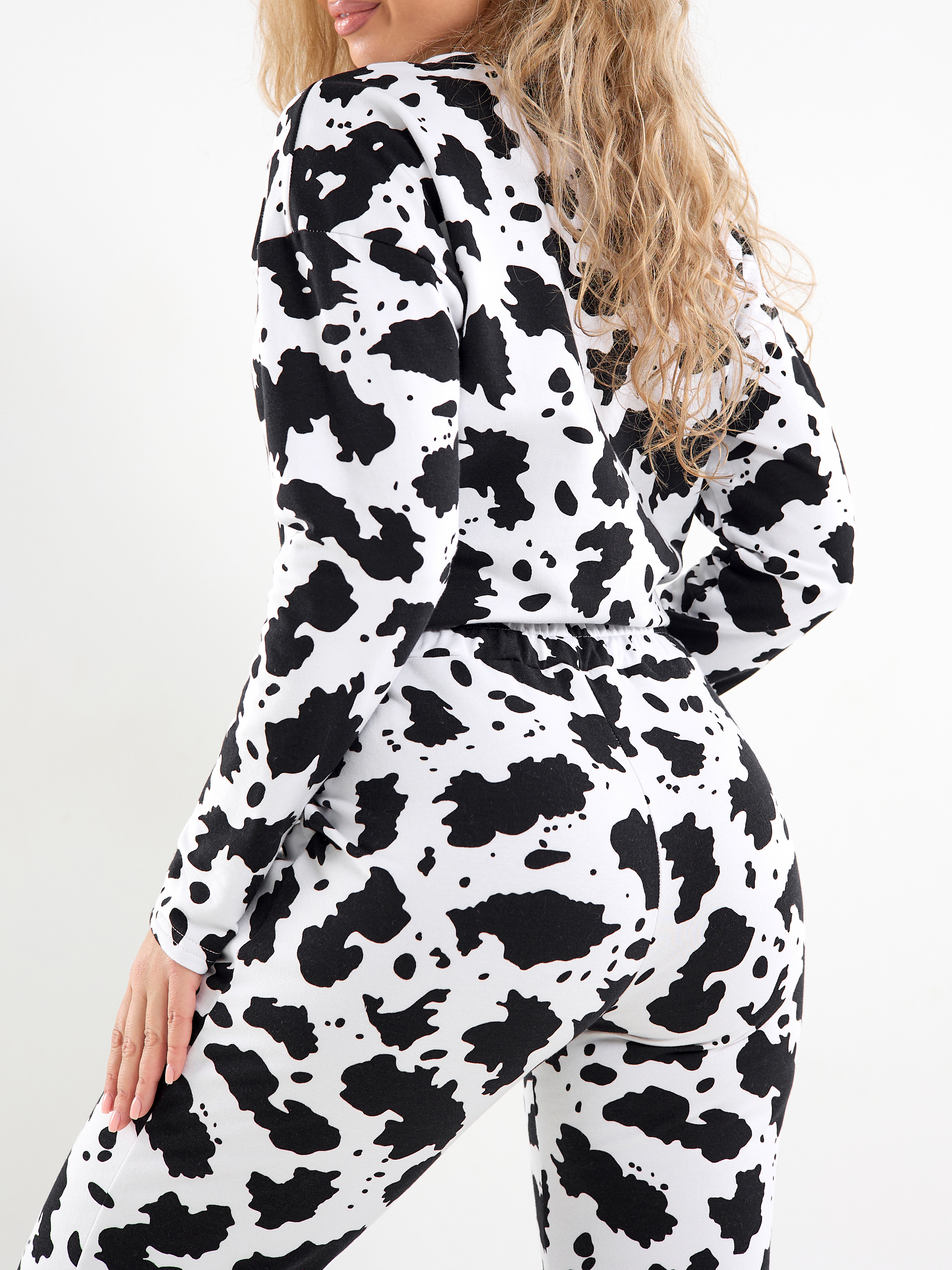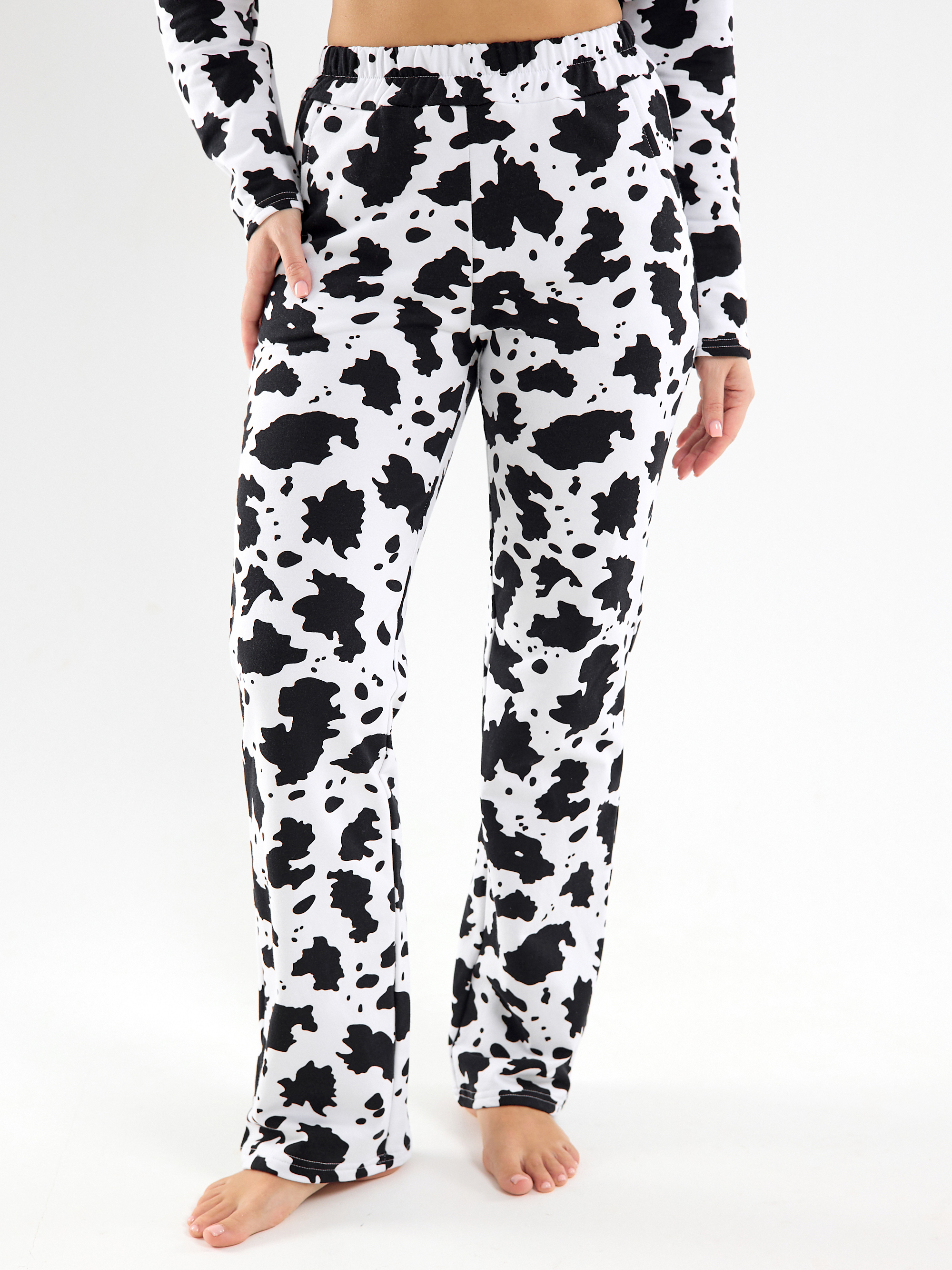 Представляем вам теплую женскую пижаму со штанами от Лето-Текс, которая станет вашим лучшим спутником в холодные осенние и зимние ночи. Утепленный и комфортный домашний комплект состоит из брюк с карманами и кофты с разрезами. Зимняя пижама выполнена из максимально мягкого и уютного материала футер двухнитка с начесом, который обеспечивает ощущение комфорта и невероятной мягкости на ощупь, позволят вам создать идеальные условия для спокойного сна и полноценного отдыха. Состав материала 95% хлопка и 5 % лайкры, мы специально добавили в состав немного лайкры, что бы после стирки пижама не подсаживалась и не вытягивалась в процессе ежедневной носки. Стильный и привлекательный дизайн пижамы с трендовым коровьим принтом позволит вам не только чувствовать себя комфортно, но и выглядеть прекрасно в любой ситуации.